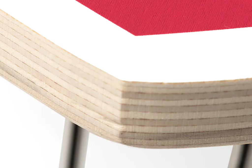 The Heart Folding Table is made from birch plywood in the shape of our archival Heart motif and features a graphic print on the surface. The table top rests on foldable iron legs.