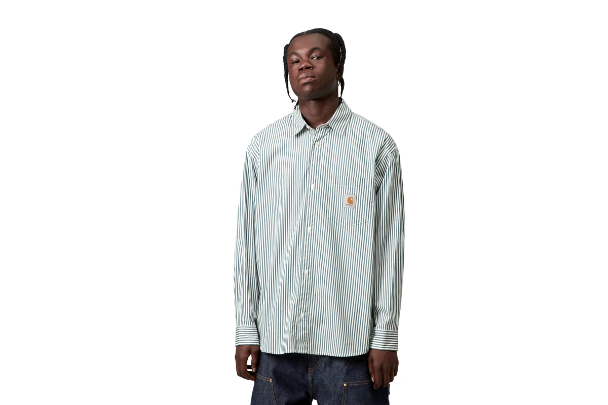 The L/S Daldry Shirt has an oversized fit and is made from a lightweight, striped cotton poplin. The style features a chest pocket with a woven Square Label.
