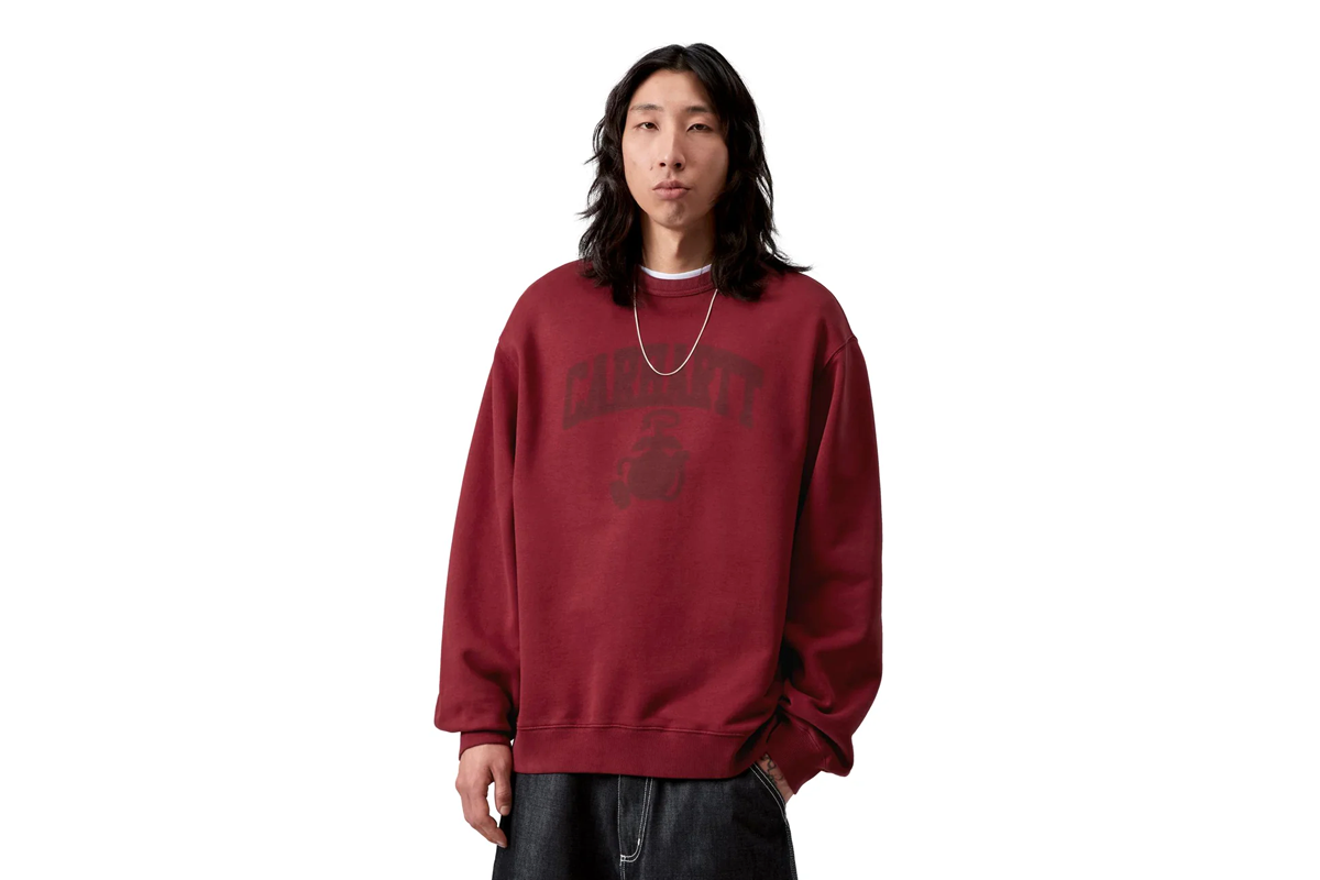 The Faded Pond Corps Sweat is made from a heavyweight, unbrushed polycotton fabric with a tactile loopback construction. The style is cut in a balloon fit, which is a little looser and boxier, but also characterized by dropped shoulders and ribbed trims. A graphic print appears on the chest.