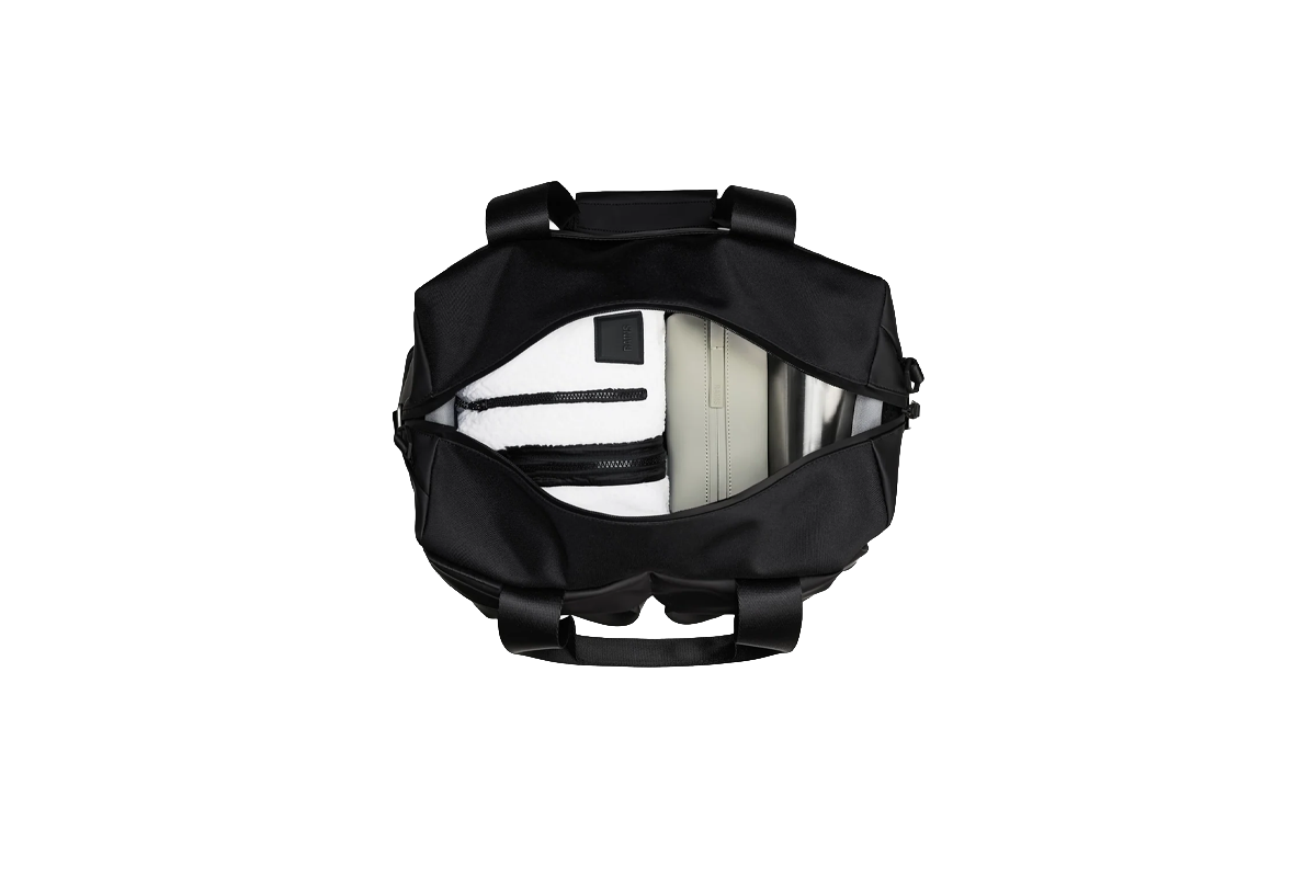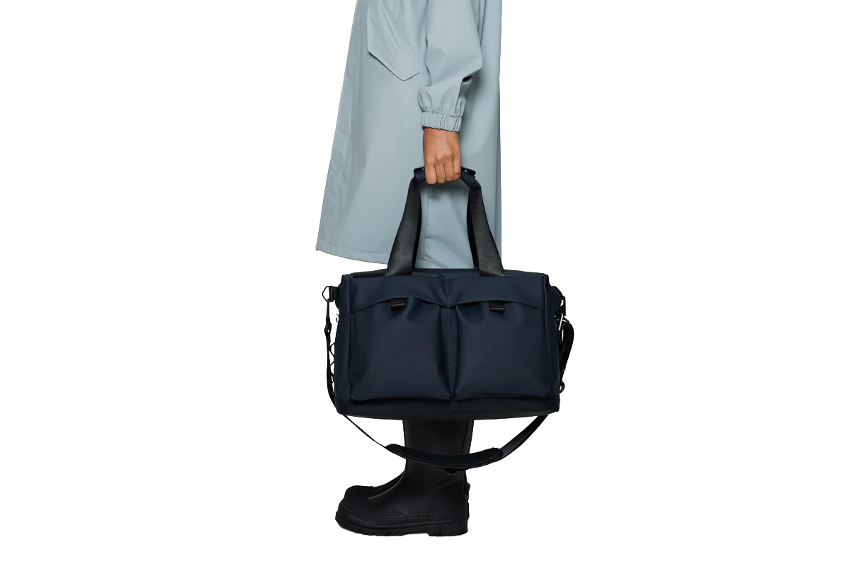 Otaru Weekend Bag Small is cut from a mix of Rains’ signature waterproof PU fabric and waterproof woven polyester, engineered for carrying strength, durability, and a smooth feel.