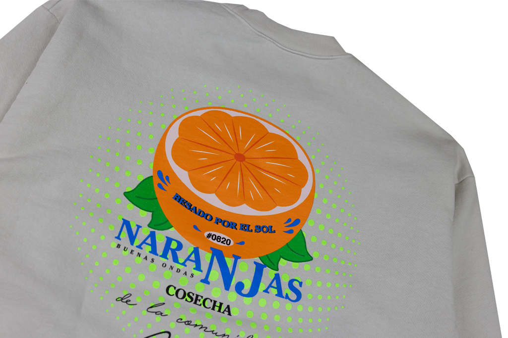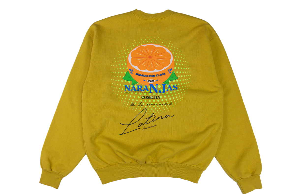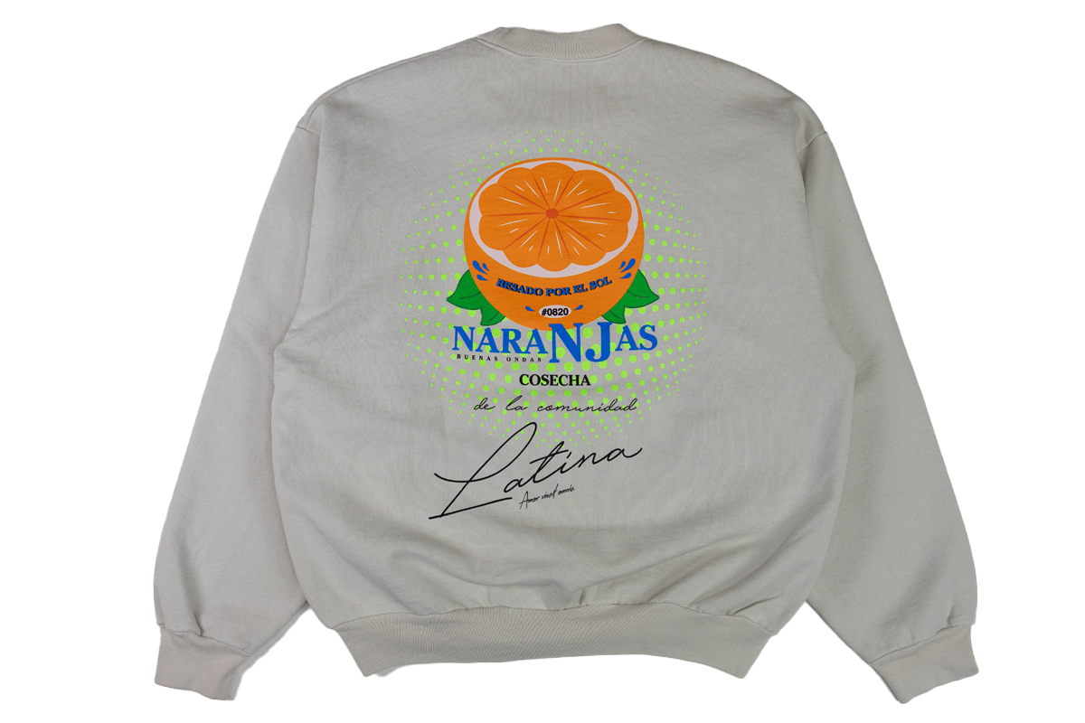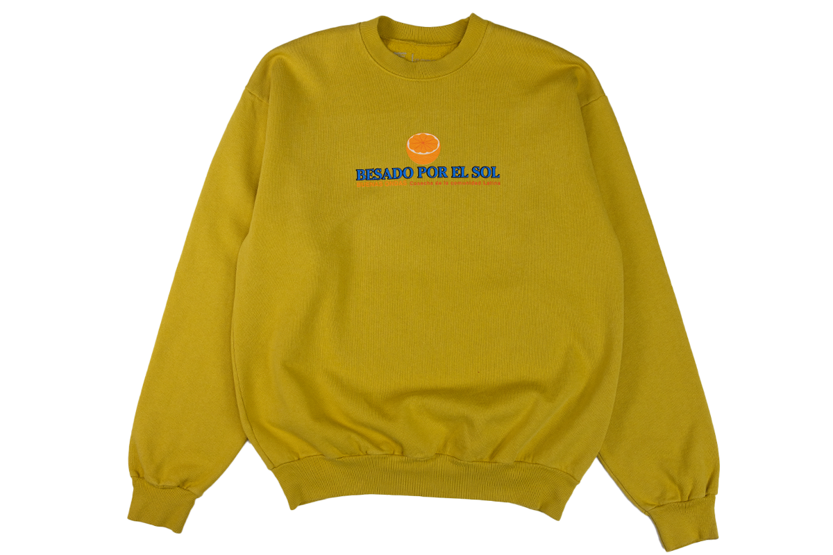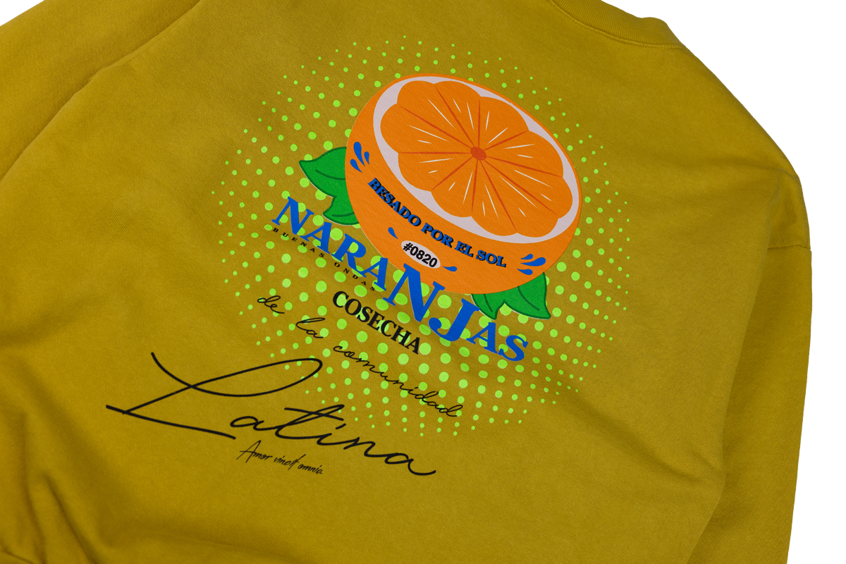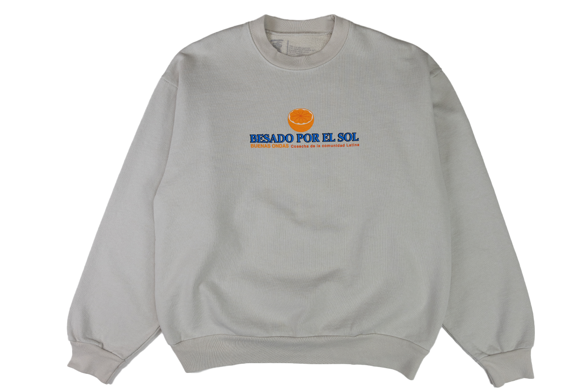 Besado Design is a play on Sunkiss, "Kissed by the sun". With their good vibes slogan, Buenas Ondas. Cosecha de la comunidad Latina, which translate to Harvest by the Latina Community. On the Back of shirts read Naranjas in English translate to oranges. Under it all: "Amor vincit omnia" is a Latin phrase meaning "Loves Conquers All".